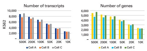 图4 SMART-Seq技术允许即使较低测序深度,也能获得大量的转录本和基因
