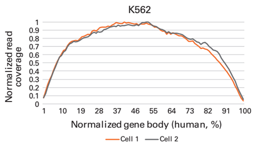 图5 RNA-Seq文库体现出更高的覆盖度均一性,说明分析结果无3’或5’偏好性,