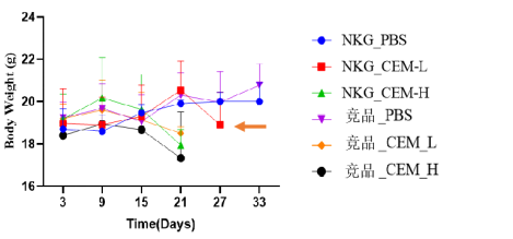 | THP-1 | 赛业C-NKG | i.v. | 1.00E+06 | 7月22日 | D3 | 8月24日 | 33天 |