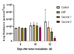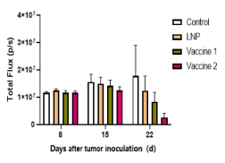 图8. 基于血液瘤AML模型的mRNA疫苗药效学评估。人源PBMC移植至C-NKG小鼠后,进行血液瘤AML荷瘤实验,并用mRNA疫苗抑制肿瘤的生长。结果显示,mRNA疫苗对血液瘤具有明显的抑制作用。