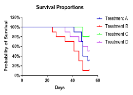 图7. 利用huPBMC-C-NKG模型进行抗GvHD药效评价。huPBMC-C-NKG小鼠可用于GvHD药物评价以及靶点在T细胞的肿瘤免疫治疗(双特异性抗体、免疫检查点抑制剂)研究。(Treatment A、Treatment B、Treatment C和Treatment D均指不同的抗GvHD药物处理,药物来自第三方客户)