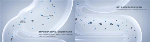 研派研发团队认为,当前最有效净化人体内环境、降低微塑料危害的方式,一是减少微塑料的摄入,二是在微塑料被吸收进人体之前加速其排出。以遵循自然的研发路线,研派独创“排塑”功效益生菌Droplastic™(即植物乳杆菌DT88),能通过特异性吸附包裹微塑料,减少微塑料和肠道粘膜接触,同时通过促进肠道蠕动,加速微塑料排出体外,双管齐下减少微塑料吸收进入人体内。