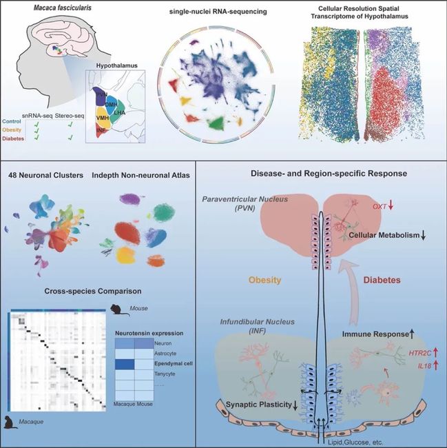刘铁民/孔星星及其合作团队揭示灵长类肥胖和糖尿病下丘脑的脑区和细胞特异性分子响应