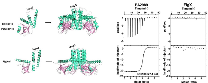 图1 FlgX具备四聚体PilZ特征且不能结合c-di-GMP