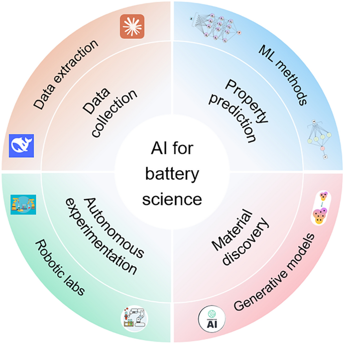 人工智能在材料科学中的应用显著,涵盖数据收集、性质预测、材料发现及自主实验。大型语言模型加速材料发现,AI对锂离子电池性能提升具有突破性作用,尽管存在挑战,但AI驱动的工具正推动材料科学创新。