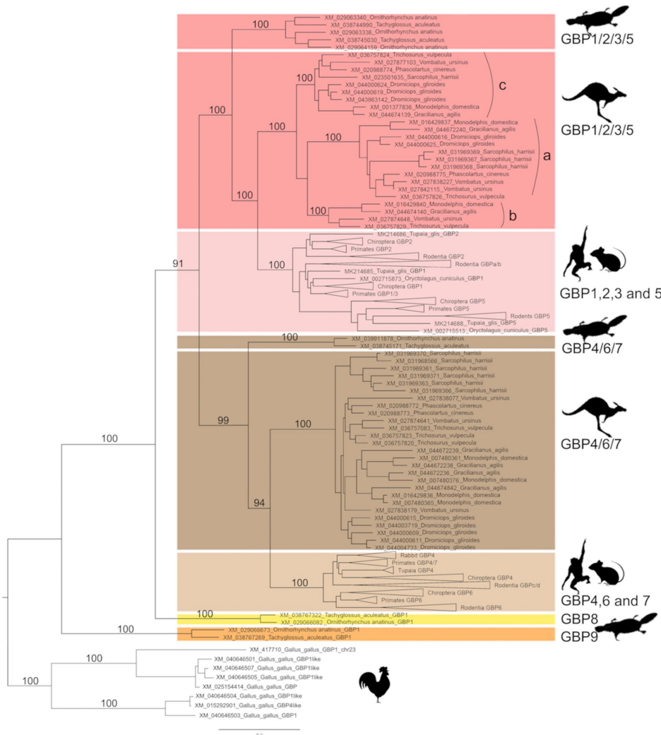解密哺乳动物鸟苷酸结合蛋白(GBP)的起源与演化:从单孔类到有袋类和有胎盘类的比较基因组学分析