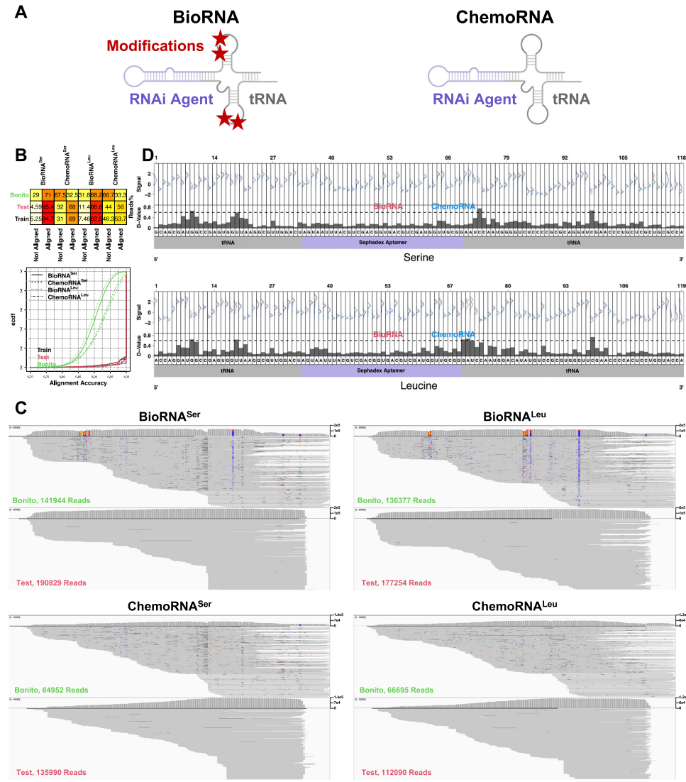 本研究针对纳米孔测序中核苷酸修饰干扰碱基识别准确性的技术瓶颈,开发了一种参考引导的迭代式碱基识别优化方法(iterative basecalling)。该研究通过训练生物分子特异性的高精度碱基识别模型,成功实现了对人工修饰mRNA疫苗和天然修饰BioRNA的精确序列解析,将治疗性RNA质量控制从序列层面提升至修饰状态层面,为RNA药物的质量评估提供了突破性技术方案。