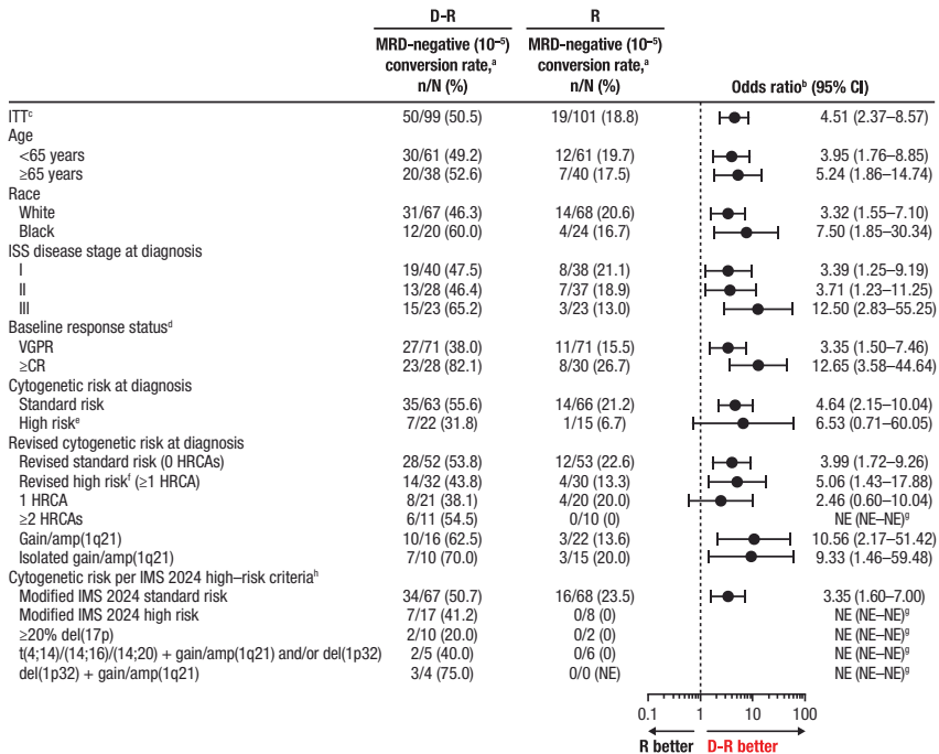 Daratumumab联合来那度胺维持治疗改善移植后新诊断多发性骨髓瘤患者MRD转阴率及生存预后:AURIGA研究亚组分析