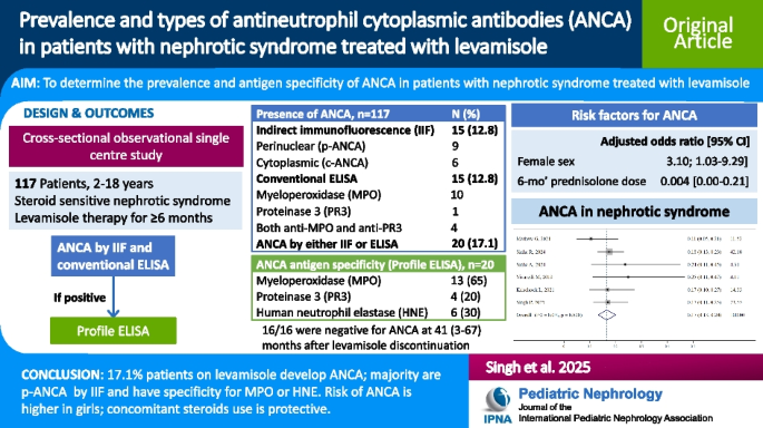 《Pediatric Nephrology》:Prevalence and types of anti-neutrophil cytoplasmic antibodies in patients with nephrotic syndrome treated with levamisole