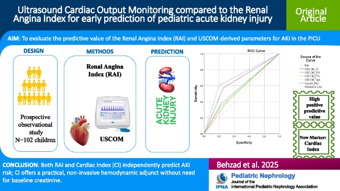 《Pediatric Nephrology》:Ultrasound cardiac output monitoring compared to the renal angina index for early prediction of pediatric acute kidney injury