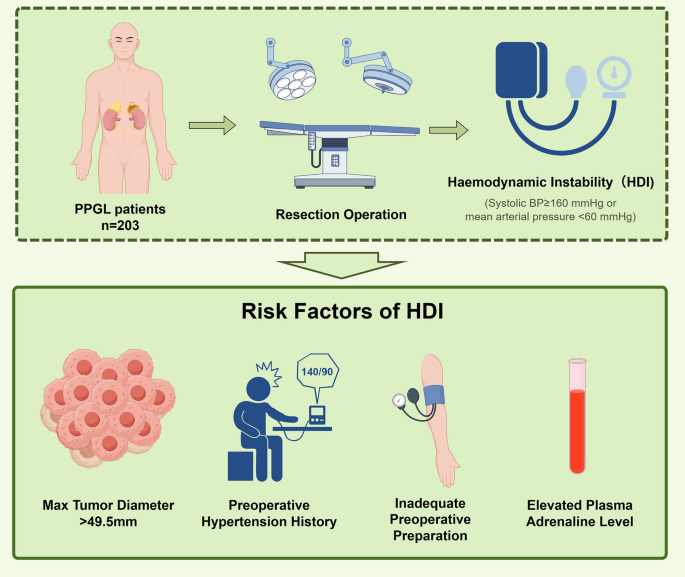 尽管进行了术前准备,术中血流动力学不稳定(HDI)在嗜铬细胞瘤和副神经节瘤(PPGLs)的手术中仍然是一个重大挑战。确定预测因素对于风险分层和管理优化至关重要。