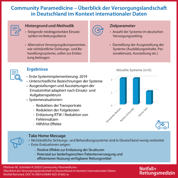 《Notfall + Rettungsmedizin》:Community Paramedicine – überblick der Versorgungslandschaft in Deutschland im Kontext internationaler Daten