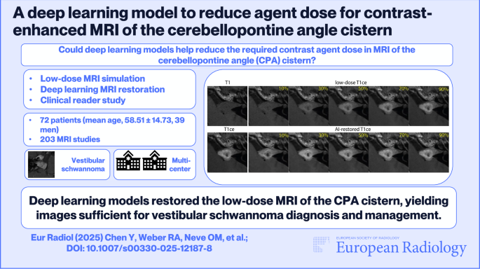 《European Radiology》:A deep learning model to reduce agent dose for contrast-enhanced MRI of the cerebellopontine angle cistern