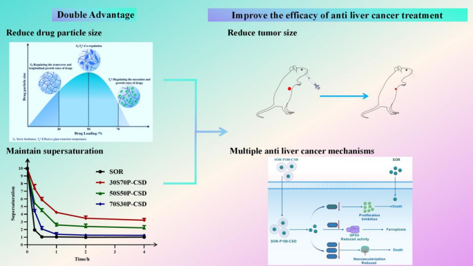 SOR-P188-CSD通过减小药物粒径并维持药物过饱和状态,实现了药物的溶解并提高了其生物利用度,从而增强了药物的抗肝癌效果。