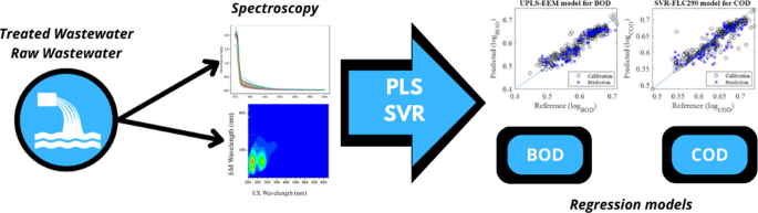 监测水质和废水质量对环境管理和公共卫生至关重要,传统上依赖生化需氧量(BOD)和化学需氧量(COD)等物理化学分析方法。然而,这些传统方法耗时、成本高昂且会产生有毒废物。在本研究中,将紫外-可见光(UV-Vis)和激发-发射矩阵(EEM)荧光光谱技术与化学计量方法相结合,为废水监测提供了一种快速且可持续的替代方案。使用处理过的废水(TWW)、原始废水(RWW)及其组合数据,评估了偏最小二乘法(PLS)、展开型PLS(UPLS)和支持向量回归(SVR)模型。结果表明,结合EEM光谱的UPLS在BOD预测方面表现最佳(R2p = 0.845),而使用290 nm处2D荧光的SVR在COD预测方面也取得了不错的结果(R2p = 0.738)。重要的是,结合TWW和RWW样本增强了模型的稳健性,这突显了数据集变异性在提高预测准确性中的作用。总体而言,EEM荧光光谱与多元回归相结合为估算废水中的BOD和COD提供了一种快速、经济且环保的方法。