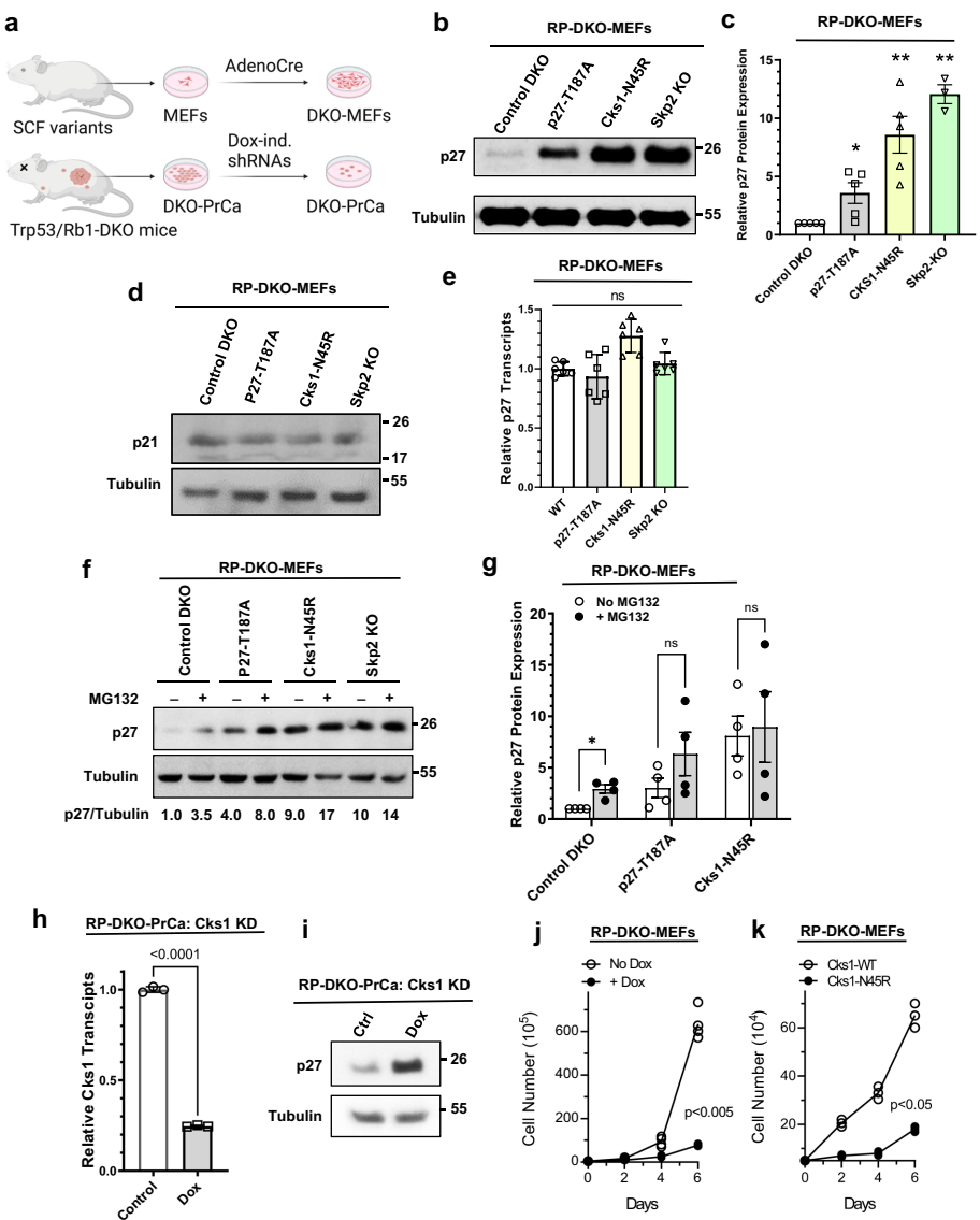 研究采用多组学技术联合作战:通过CRISPR/Cas9构建Cks1N45R/N45R基因敲入小鼠模型;利用9.4T小动物MRI动态监测前列腺肿瘤进展;结合免疫共沉淀和蛋白质稳定性分析揭示Skp2-p27双向调控机制;采用流式细胞术分析细胞周期阻滞效应。所有实验均在Rb1lox/lox;Trp53lox/lox双敲除背景的小鼠胚胎成纤维细胞(MEFs)和原代前列腺癌细胞中进行验证。