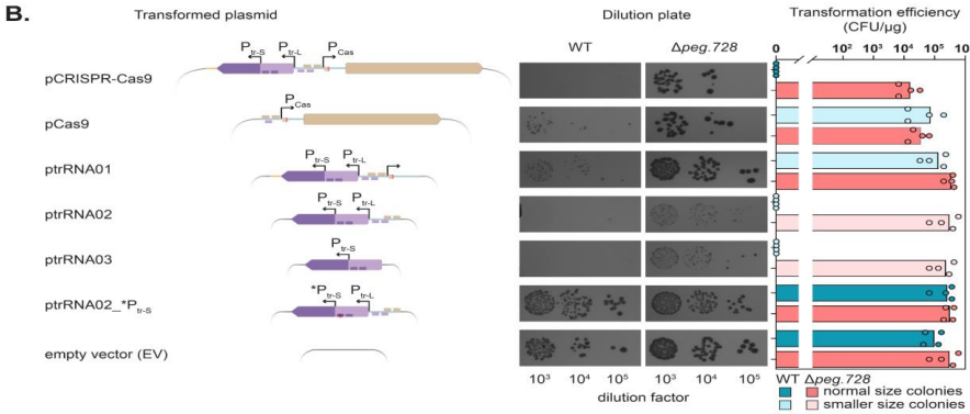 本研究揭示了CRISPR-Cas9系统中tracrRNA短亚型(tracr-S)在乳酸副干酪乳杆菌(Lacticaseibacillus paracasei)中独立于Cas9的细胞毒性作用。研究人员通过构建系列质粒载体,发现tracr-S通过其anti-repeat和nexus区域与宿主RNA相互作用导致细胞毒性,并鉴定出转录调控因子Peg.728参与调控tracr-L表达。该研究为CRISPR-Cas9系统在非原生宿主中的应用提供了重要参考,发表于《microLife》。