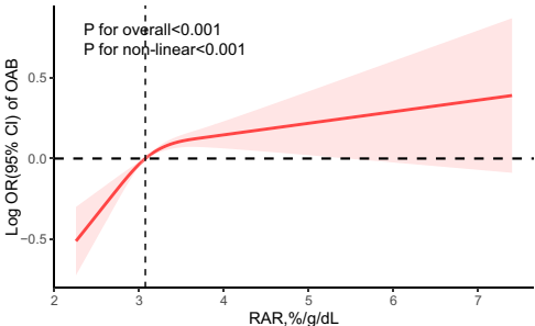 限制性立方样条分析揭示RAR与OAB存在非线性关联: