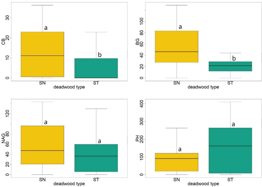 本研究针对山地银杉(Abies alba Mill.)林中树桩(stumps)与枯立木(snags)的生态功能差异问题,通过比较其理化性质、酶活性及微生物群落结构,揭示了二者在促进生物多样性和养分循环中的独特作用。研究发现枯立木纤维素降解酶(CB、BG)活性显著高于树桩,而树桩细菌多样性指数(Mb、Hb)更优,证实了死wood形态通过微环境差异驱动微生物群落分异,为山地森林生态系统管理提供了科学依据。论文发表于《Annals of Forest Science》。