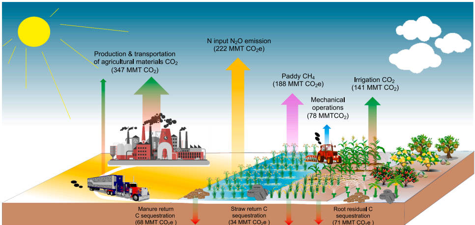 在全球气候变暖背景下,农业作为重要的温室气体排放源,其减排潜力备受关注。中国作为世界最大的农业生产国,作物生产系统面临着保障粮食安全与减少环境足迹的双重挑战。当前中国农田系统每年产生高达1161±100百万吨CO2当量的净排放,其中氮肥过量使用、水稻种植甲烷排放和土壤固碳不足等问题尤为突出。如何在不影响粮食产量的前提下实现农业碳中和,成为亟待解决的科学难题。