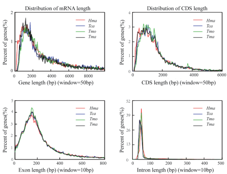 与赤拟谷盗(Tribolium castaneum)等物种对比显示,马可波罗芫菁具有更紧凑的基因结构(平均基因长度4,401 bp),内含子进化显著缩短