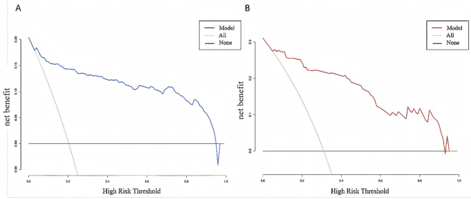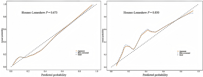 校准曲线和决策曲线分析(DCA)证实模型具有优秀的一致性和临床适用性: