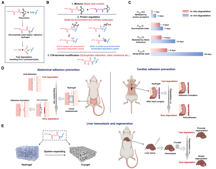 "可控降解的琥珀酰胺酯基粘附水凝胶:生物医学应用中的降解机制调控与精准治疗新策略"