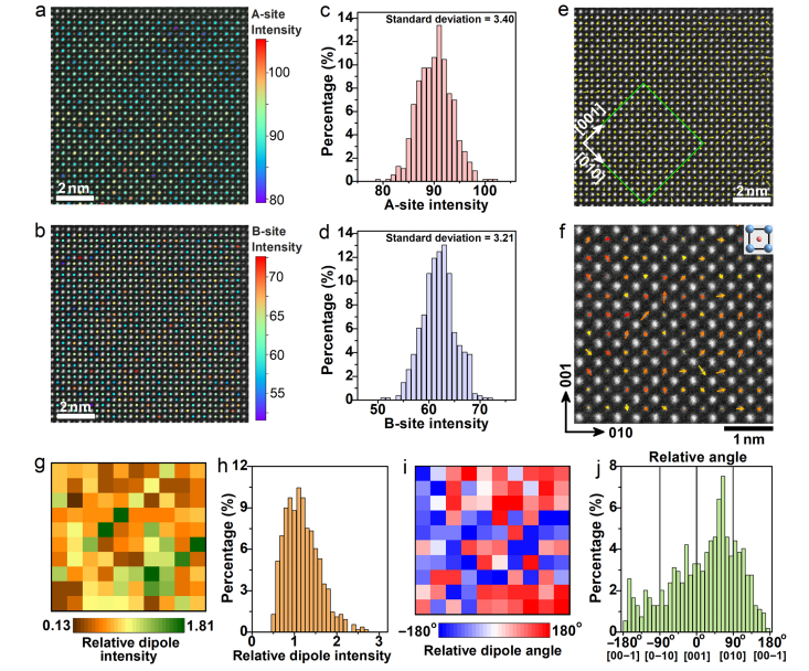 HAADF-STEM显示A/B位离子强度标准差仅3.4/3.2,证实局域结构高度有序