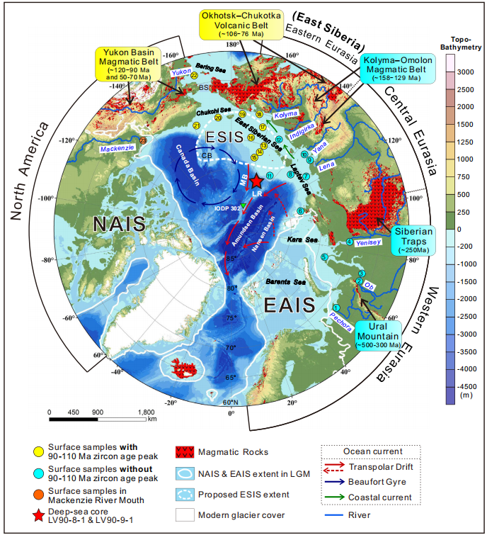 北极冰盖演化历史一直是古气候研究的核心谜题,尤其是东西伯利亚是否存在冰盖的争议已持续20余年。传统矿物组合和同位素地球化学方法难以区分欧亚大陆东部与西部冰盖的沉积物来源,而铁氧化物指标虽能识别东西伯利亚来源,却无法提供精确的年代学框架。这一认知空白严重制约了我们对北极冰盖-气候反馈机制的理解。