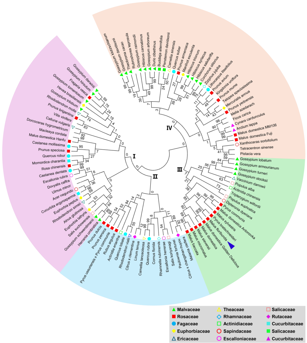 Rvi6的系统特性:系统发育分析显示Rvi6与蔷薇科植物抗病蛋白聚集成独立分支。该蛋白具有典型跨膜结构域和LRR(富含亮氨酸重复序列)特征,定位于细胞膜,在叶片和果实发育关键期高表达,与病原菌侵染窗口高度吻合。