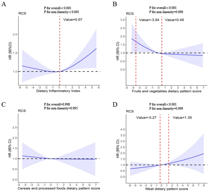 为解答这一科学问题,Qing Zhou等研究者利用英国生物银行(UK Biobank)大样本队列,开展了一项创新性研究。研究团队纳入189,561名完成至少1次24小时膳食回忆调查的参与者,通过计算包含28种食物参数的DII评分,同时采用因子分析提取出3种后验膳食模式。中位随访9.45年间共记录1041例肺癌事件,运用Cox比例风险模型分析各饮食指标与肺癌风险的关联。