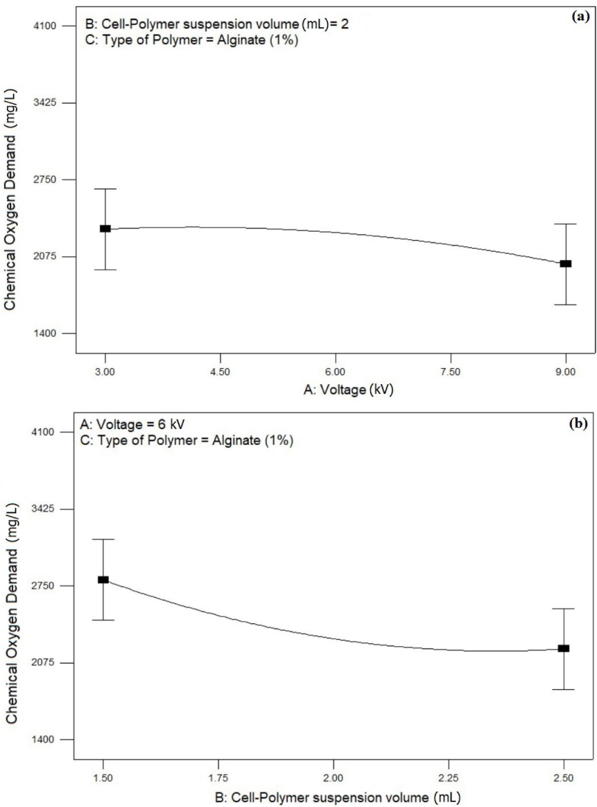 当活性污泥住进海藻酸钠"公寓"后,表现更加亮眼。在6 kV电压、2 mL聚合物体积条件下,COD去除率飙升至78%。而PVA杂化材料的表现稍逊,最低仅40%去除率。