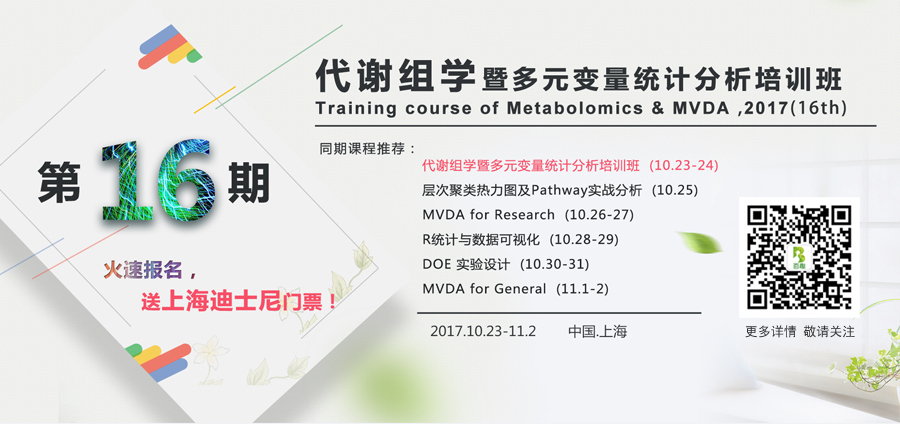 10月23-24日 代谢组学暨多元变量统计分析培训(特色课程)
