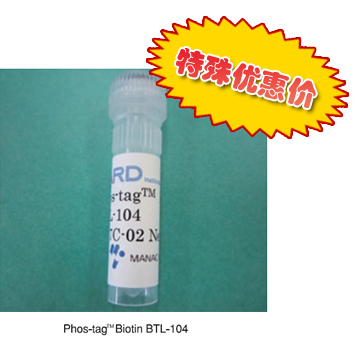 Phos-tag™是一种能与磷酸离子特异性结合的功能性分子。它可用于磷酸化蛋白的分离(Phos-tag™ Acrylamide)、Western Blot检测(Phos-tag™ Biotin)、蛋白纯化(Phos-tag™ Agarose)及质谱分析MALDI-TOF/MS(Phos-tag™ Mass Analytical Kit)。