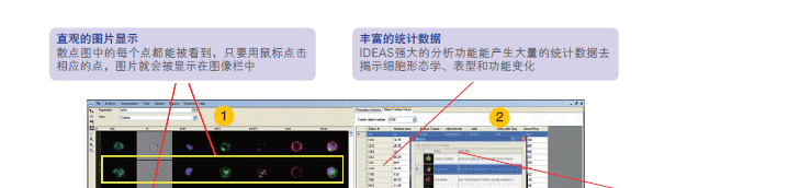 ImageStreamX则能快速、方便、准确地对大量细胞的形态学变化进行统一标准的分析并且给出统计数据,而且还能突破传统方法的局限性,对混合细胞群中的稀有细胞亚群进行形态学分析。