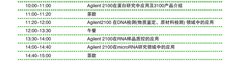 验和经验交流,我们将于7月举办Agilent 2100用户培训班。届时还会现场推出芯片及试剂产品打折优惠促销。 |