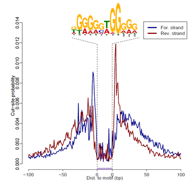 真核生物基因表达是一个复杂而有序的过程,它是众多反式作用因子和顺式作用元件之间相互作用的结果,特定时间空间下又有哪些反式作用因子和顺式作用元件互作参与?反式作用因子是指能直接或间接识别和结合在顺式作用元件上,调控靶基因表达的蛋白质因子,一般也称为转录因子(transcriptional factor,TF),转录因子结合位点((Transcription factor binding site, TFBS)是与转录因子结合的DNA 序列。确定TFBS是理解转录调控机制, 建立转录调控网络的关键问题。通过ATAC-Seq转录因子足迹分析(TF footprinting analysis), 可对TF结合情况进行预测,甚至进一步对全转录因子结合进行分析。