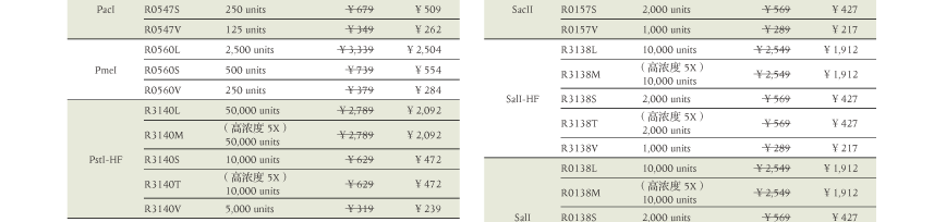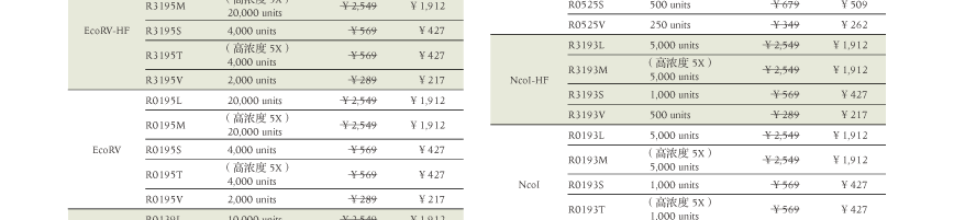 ● 高保真内切酶(HF)和 Time-Saver™ 省时内切酶全包括