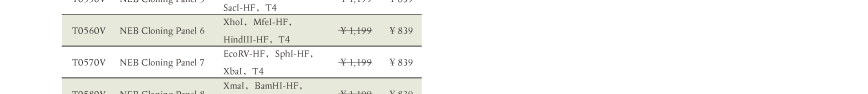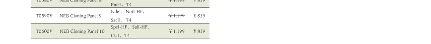 精选23种常用酶切位点的经典 CutSmart™ 内切酶与NEB金牌 T4 DNA 连接酶强强搭配,组成10款基础克隆工具包(Cloning Panel),超值推荐,轻松开启分子克隆实验。