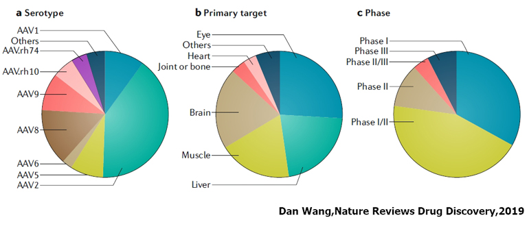 腺病毒相关病毒(Adenovirus Associated Virus,AAV) 作为一种安全有效的载体,全球有数十个临床试验在进行。