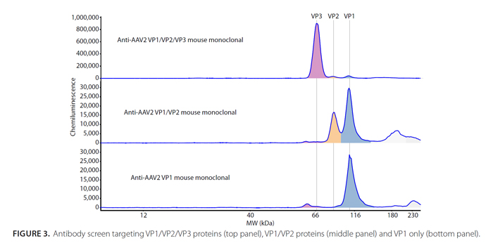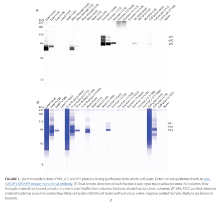 在AAV生产过程中,使用SDS-PAGE通过Western Blot来鉴定蛋白。然而,传统的Western Blot手动操作繁琐,重复性差,并且仅是半定量,不宜用于工业产品质量控制。Wes全自动定量western以其独特优势逐渐替换传统western blot,可用于新型AAV衣壳的表达到下游制造全程质量控制中。