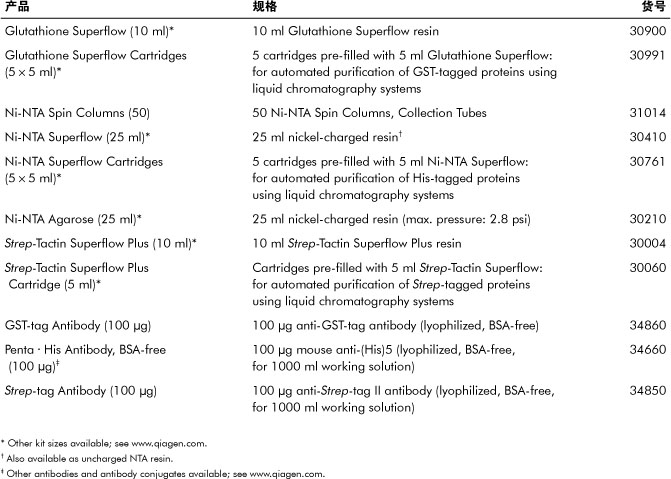 QIAGEN 公司重组蛋白纯化树脂详细信息见下表