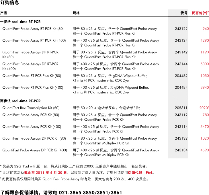 检测FFPE样品时,QIAGEN QuantiFast Probe Assay的灵敏度比AII公司预制引物探针对高10倍 |
