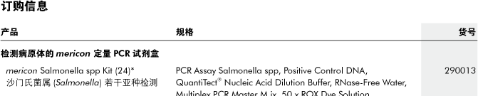 证。此外,mericon PCR Assays 经过PCR 使用的知识产权完全许可,无任何额外的费用。
