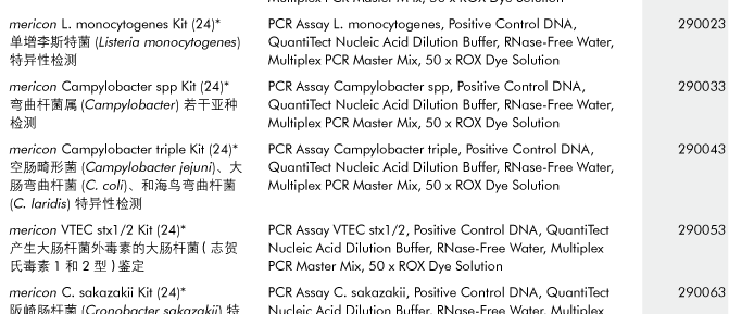 利用mericon 样本制备试剂盒和mericon PCR Assays 据有食品安全检测的整个流程都经过验证。mericon PCR Assays 在Rotor-Gene® Q realtime