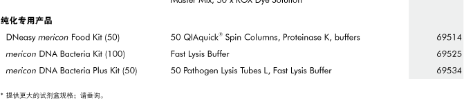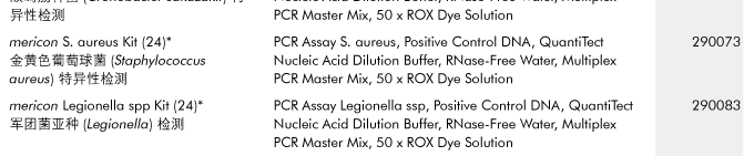 Assays 探针法试剂。mericon DNA Bacteria Kit 和mericon DNA Bacteria Plus Kit 中包含的精心配制试剂提高裂解效率,稳定了提取出的DNA,且去除了可能干扰下游应用的抑制剂。