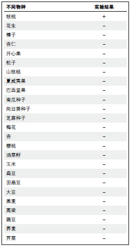 ELISA 方法在过敏原检测中很流行,尽管其会导致交叉反应性(如杏仁和花生之间的过敏原交叉反应性)。PCR 方法正在此领域中占据一席之地,因为过敏原特异的DNA 序列的直接检测赋予了其杰出的特异性。这种高特异性几乎可完全消除关于检测交叉反应性的顾虑(表2)。此外,real-time PCR 检测过敏原DNA 的灵敏度和特异性与过敏原DNA 和食品DNA 的比例无关。而这种比例常常会给ELISA 带来问题,因为过敏原通常以痕量存在,因此,特定过敏原的免疫信号可能被食品材料中的交叉反应分子所覆盖。mericon PCR Assays 能检测每个反应中低至10个拷贝的过敏原DNA。因此,real-time PCR 能高度特异地检测引起过敏的食物组分。