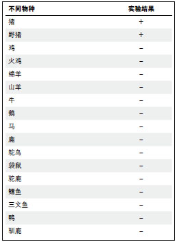 表3. 使用mericon Pig Kit 进行交叉反应的实验结果