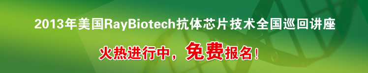 为了让更多的中国用户感受抗体芯片高通量筛选的魅力,美国RayBiotech特举办《蛋白质与抗体芯片在生物医学研究和转化医学中的应用》全国巡回讲座,欢迎感兴趣的科研人员联系当地经销商免费报名参加!