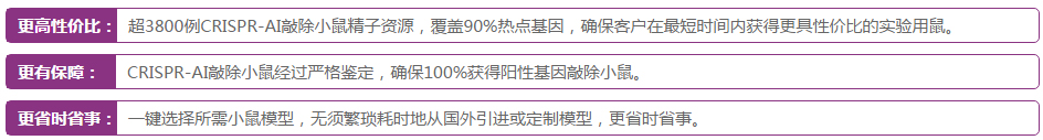 作为全球领先的转基因/基因敲除模式动物商业技术平台,历经十多年的发展,赛业已服务数千客户。得益于过往数年经验的累积并依托智能化的AlphaKnockout基因打靶专家方案系统和高通量电转受精卵技术以及经过特殊优化的促排卵技术,赛业生物在短短一年半间,成功建立了“万例CRISPR-AI敲除小鼠精子库”。依托该精子库,最快7周即可获得SPF级基因敲除小鼠。现在订购,尝新体验仅需2.38万元,购买多个,享折上折!